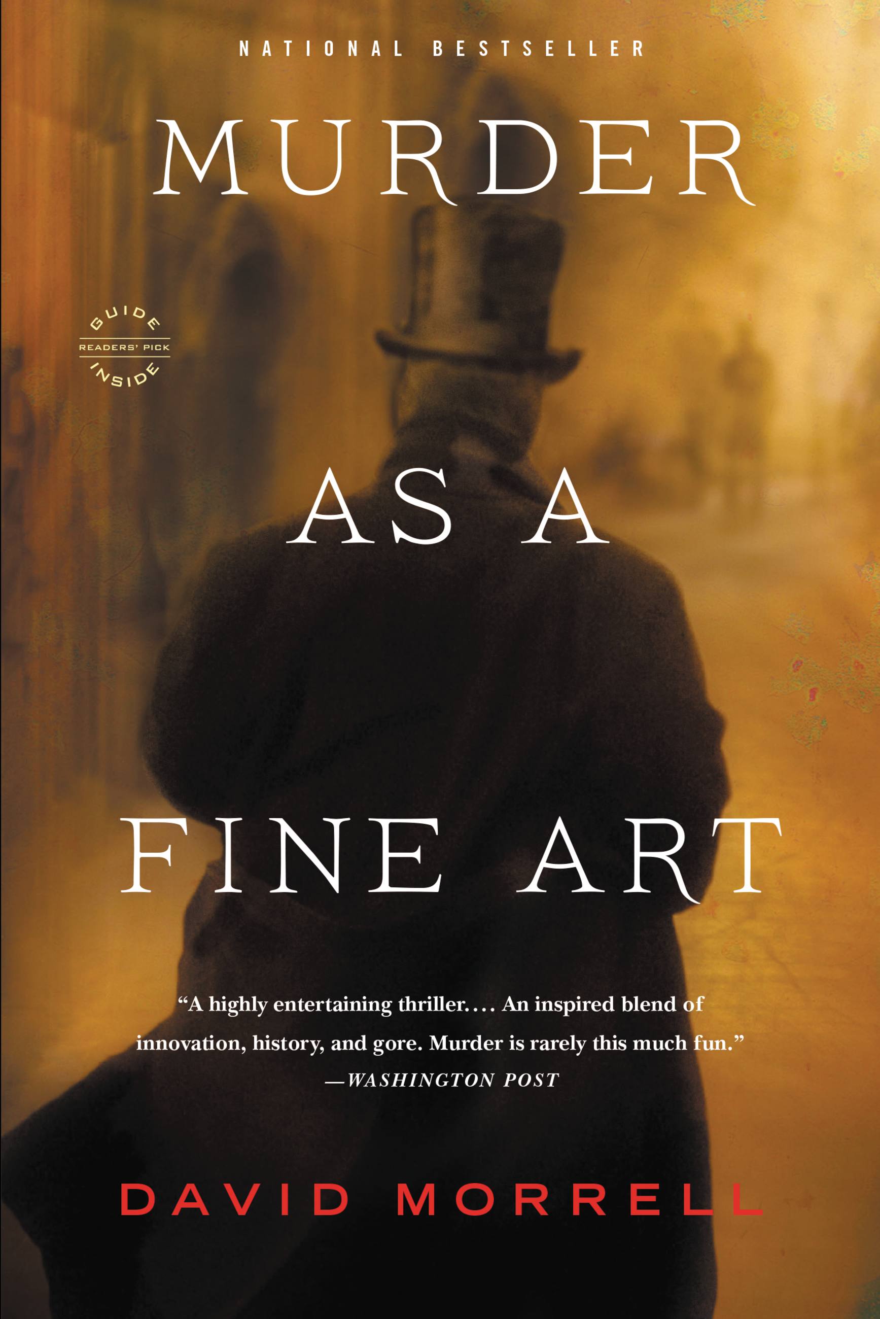 "London 1854, noxious yellow fogs, reeking slums, intrigues in high places, murders most foul, but instead of Sherlock Holmes solving crimes via the fine art of deduction, we have the historical English Opium-Eater himself, Thomas De Quincey. David Morrell fans-and they are legion-can look forward to celebrating Murder as a Fine Art as one of their favorite author's strongest and boldest books in years."Dan Simmons, author of Drood and The Terror